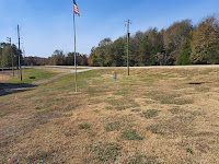 Comments: now the course breaks out into the open but with a very uninspiring hole. This hole is very flat and plays across a wide open mowed-grass field. Maybe the baseball field to the right is an obstacle? #11 tee is to the left beside the park road.