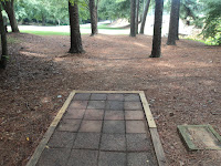 Comments: the opening hole plays slightly uphill through the mowed-grass area with not a tree or obstacle in sight. Let the plastic fly and see how far it goes! The basket is located on a low platform, which makes putting more interesting. #2 tee is to the right.