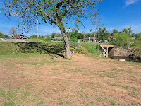 Comments: a short downhill hole with a tree in front, the drainage channel to the right, and a public road behind the basket. Yet the hole is short and open enough that an accurate throw will leave a good birdie opportunity. #14 tee is to the right near the creek.