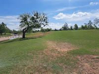 Comments: a slightly downhill hole that plays north over a small drainage. A single medium-sized tree guards the front right of the basket, and the concrete-walled drainage channel on the left could come into play with a bad throw or a big gust of wind. Honestly, this is one of my favorite holes on this course. #2 tee is to the right.