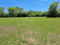 Comments: easily the tightest hole on the front nine, small clusters of large trees guard either side of the basket. There are some pine trees in those clusters, so they will eat up your disc. It will take a nearly straight throw to get near the basket. To reach #10 tee, walk back to the parking lot, then walk to the left of the wire fence with the playground and picnic area on the right. #10 tee is beyond the #18 basket, which was marked as the #10 basket when I came here.