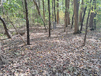 Comments: a dogleg right with dense woods on the inside of the dogleg. Like the previous 2 holes, some overhanging limbs create a low ceiling, so you will need a low throw with left-to-right disc flight to set-up a birdie opportunity. #5 tee is further east on the park road and to the right.